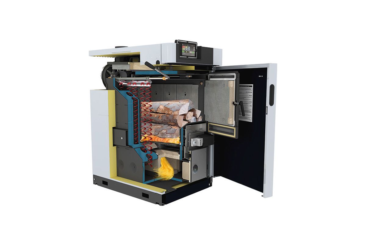 Automatische Verbrennung von festen Brennstoffen (Holz) CO² neutral, emissionsarm, für den etwas größeren Wärmebedarf, gut kombinierbar je nach Projekt.